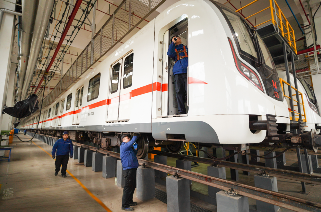 地铁列车技术人员对列车进行全面检修。通讯员方正阳 摄
