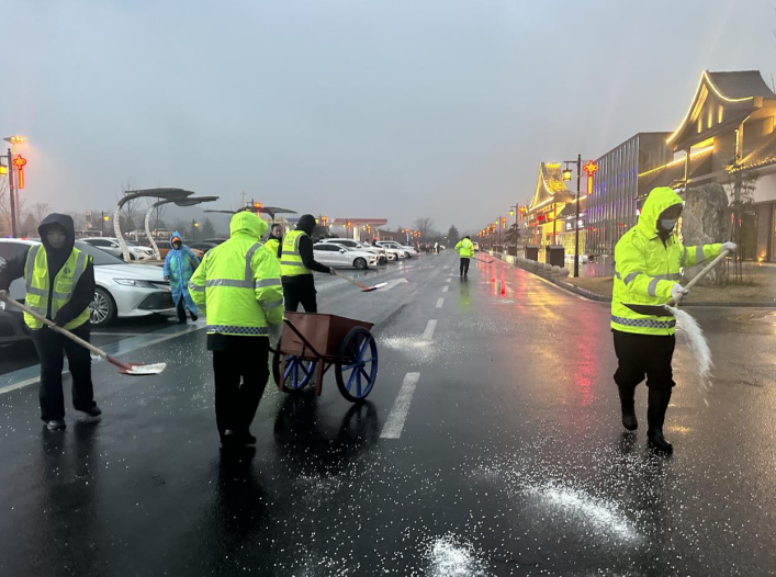 内外联动共作战。加强与属地政府、兄弟单位建立联勤联动机制,湖北交投集团各运营单位启动撒布机对服务区广场撒布融雪剂,十堰市长寿镇政府派驻8名工作人员驻扎长寿服务区,协助服务区开展除雪保畅工作。