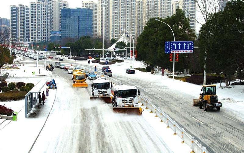 2月20日夜间,我市再次迎来冻雨和强降雪天气,给交通出行带来不便。我市专汽企业组织除雪车辆上路清扫交通主干道,方便市民出行。(随州日报全媒记者徐斌摄)