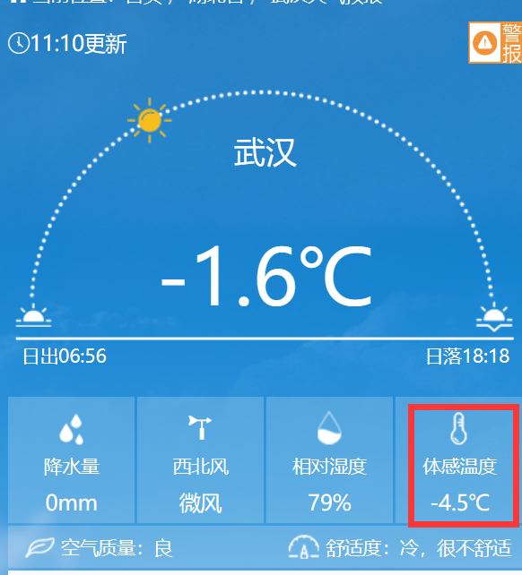 从湿度而言,今日11时,武汉湿度达到79%,湿冷魔法不是虚的。