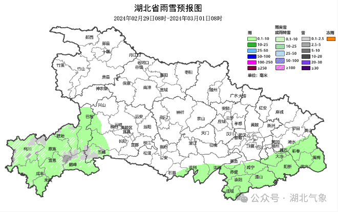 3月1日鄂西南、鄂东南有零星小雨西部高海拔地区有零星小雪其他地区天气晴朗
