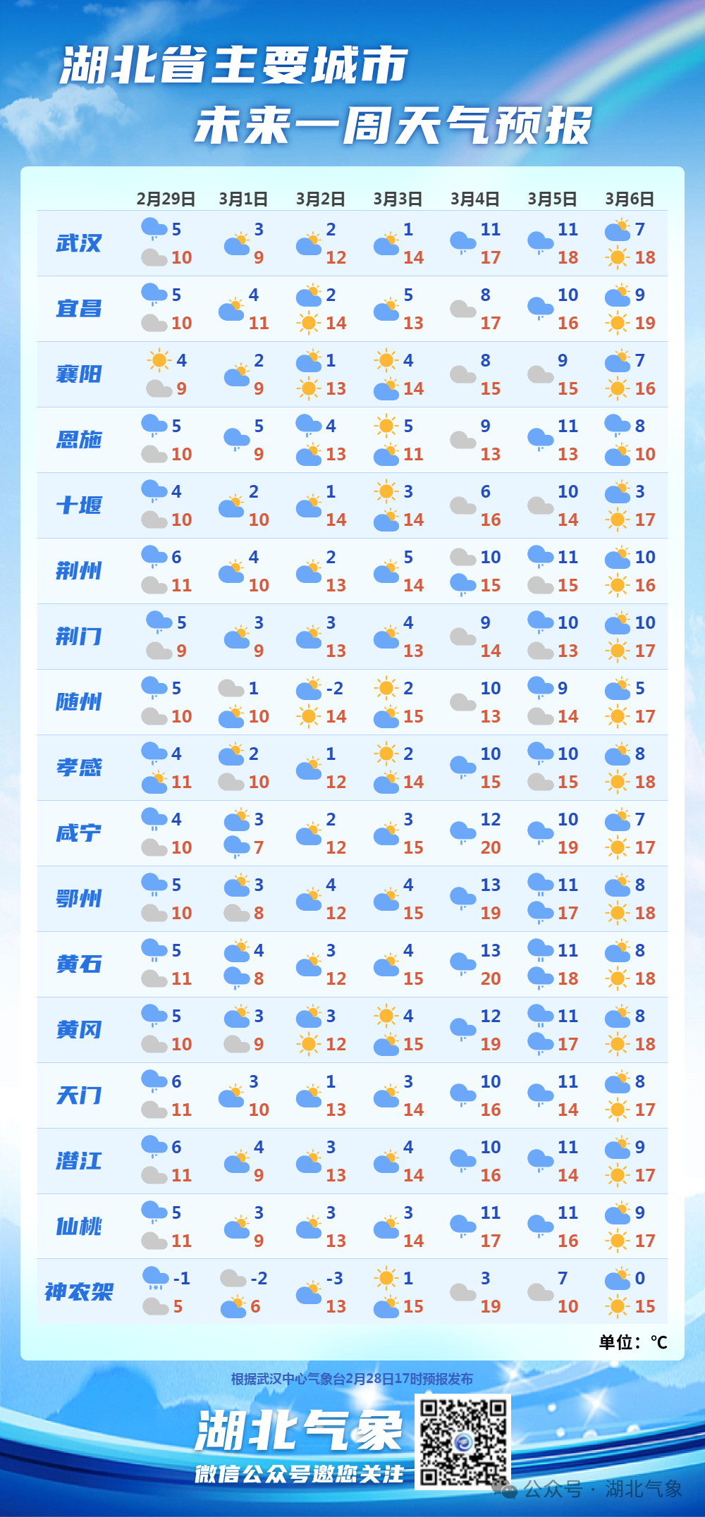 湖北省主要城市未来一周天气预报