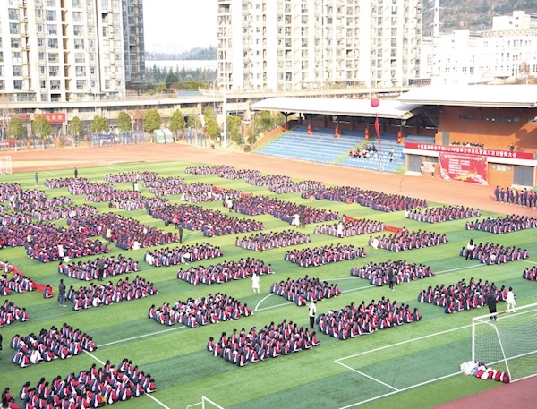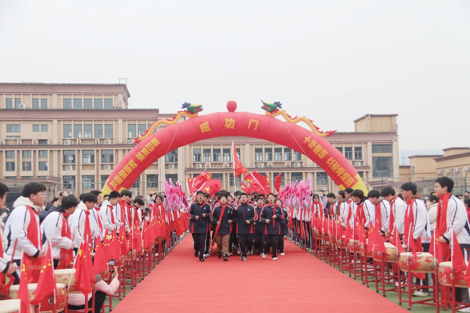 2月28日,郧西一中高三学子列队走过“成功门”。图/通讯员朱新良
