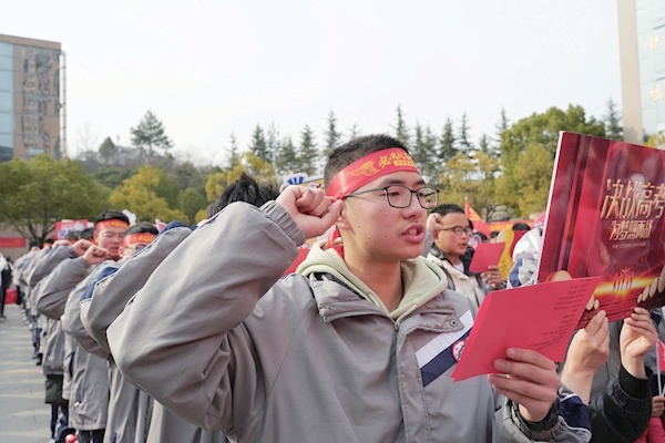 2月27日,十堰高级职业学校举行高考百日誓师大会。图/记者刘俊驰