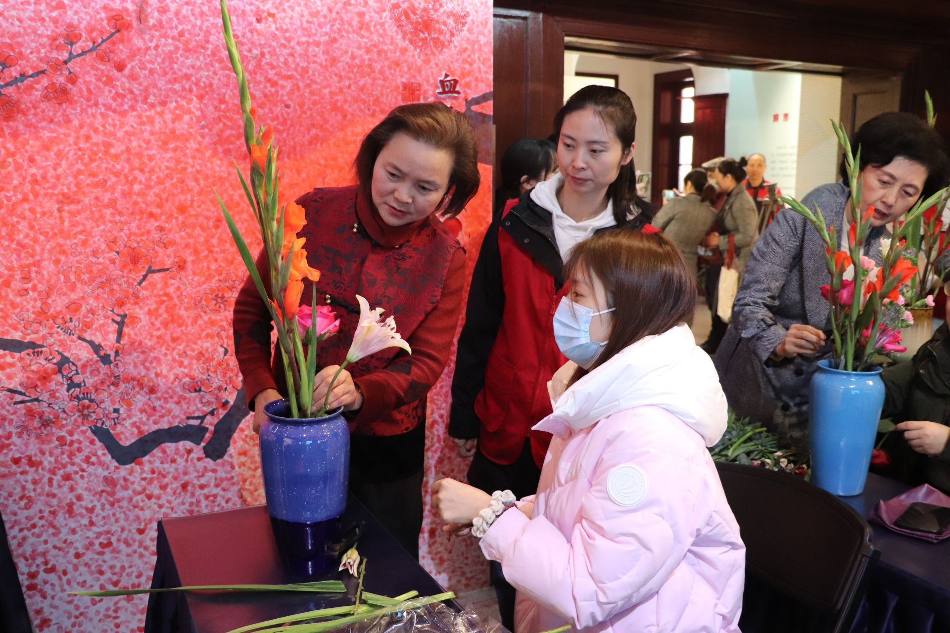 活动以丰富女性精神世界为目标,并借红色展览和非遗插花来展现女性“巾帼不让须眉”的家国情怀和高雅风采,培养女性知美、懂美的生活情趣和对幸福生活的美好追求。