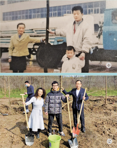 图①:1999年春,魏文芳(左一)和家人种下第一棵树时的合影。