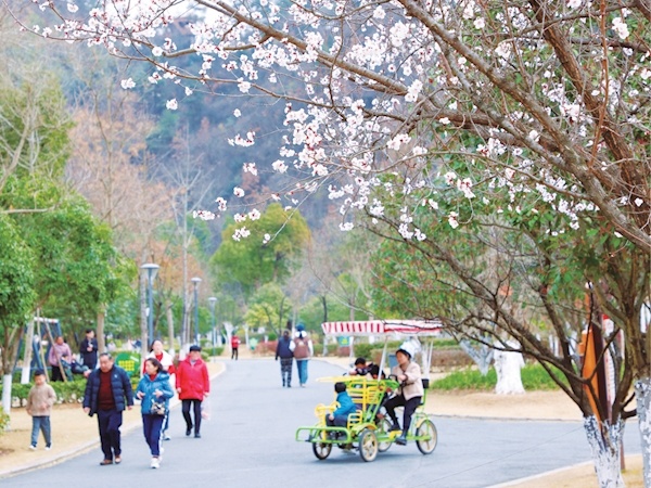 阳春三月,春暖花开。3月10日,记者在四方山生态公园看到,桃花、杏花竞相开放,阵阵芬芳沁人心脾。市民们或三三两两漫步、或登山游览、或骑行健身、或赏花观景,尽享生态福利。记者全正摄