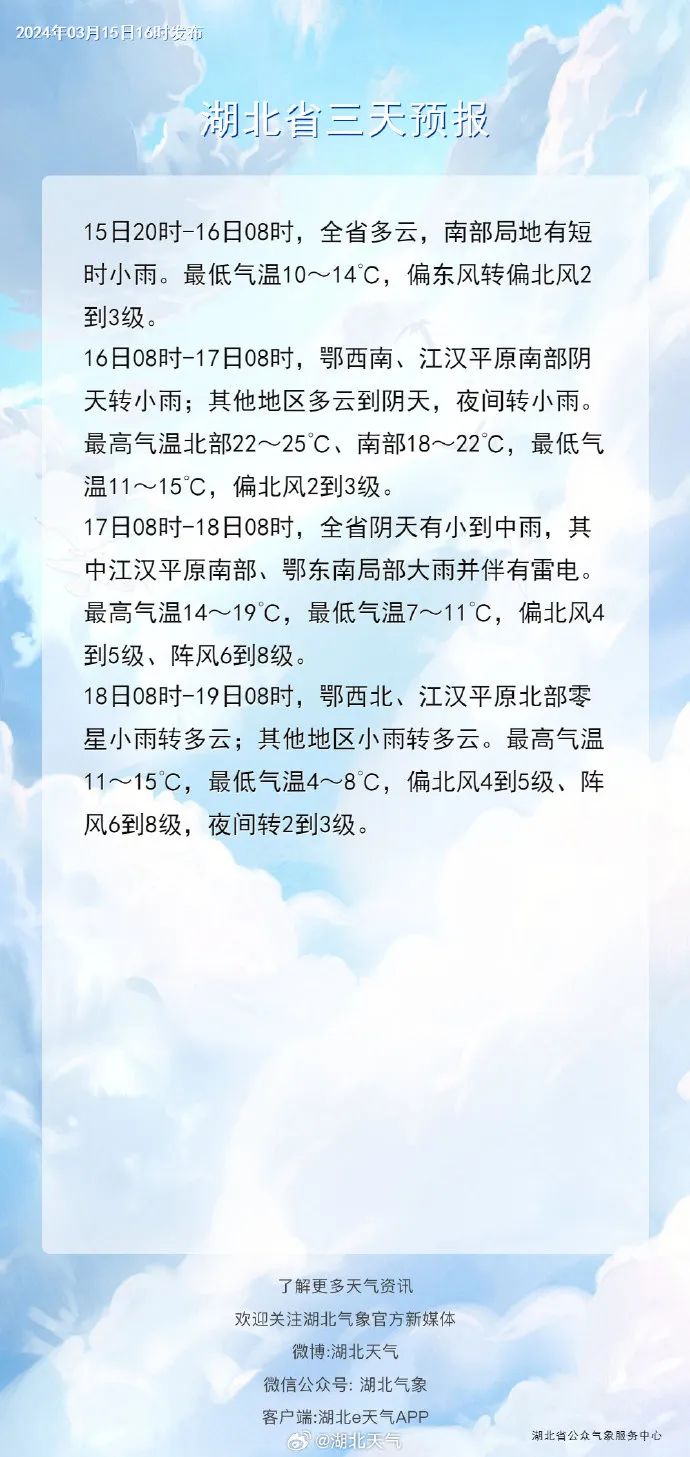 湖北自西向东云量逐渐增多