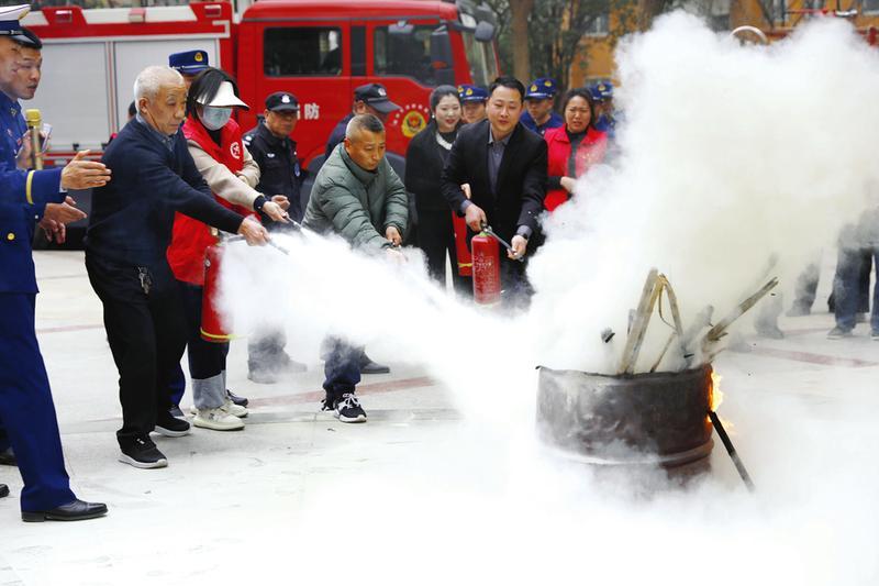 3月15日,曾都区东城街道天后宫社区联合东城特勤消防站、富祥物业公司和下沉单位,组织汉东星都小区居民开展消防知识讲座和消防安全应急演练,提升居民消防安全意识和应急自救能力。 (随州日报全媒记者徐斌摄)