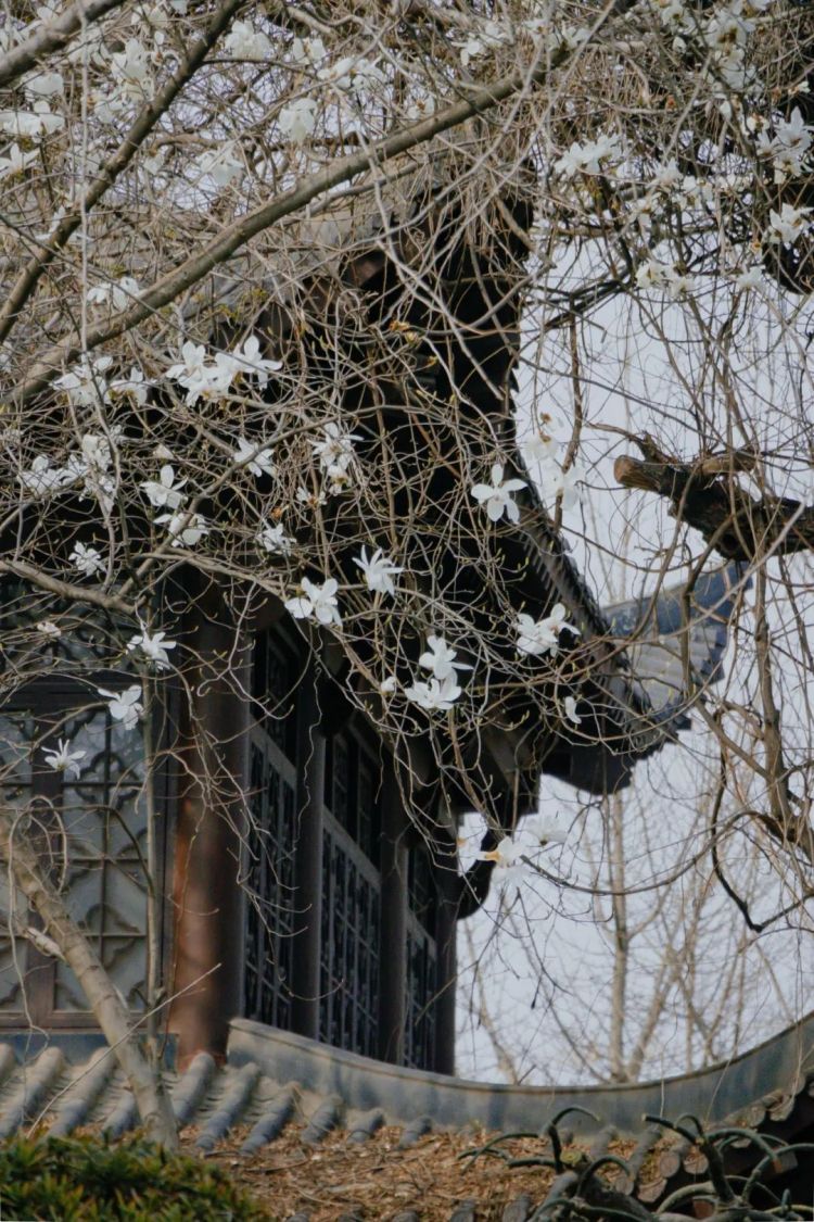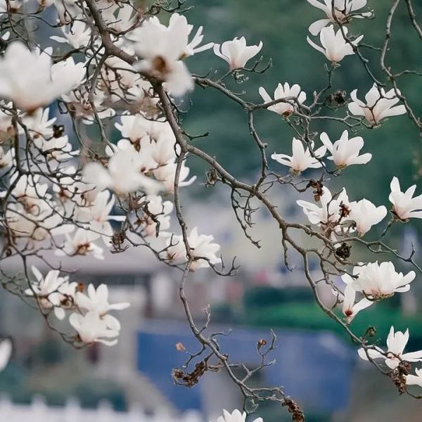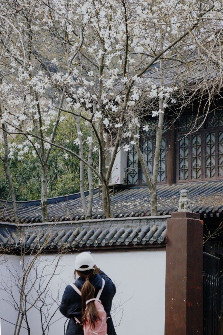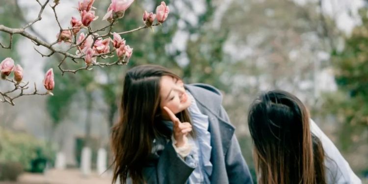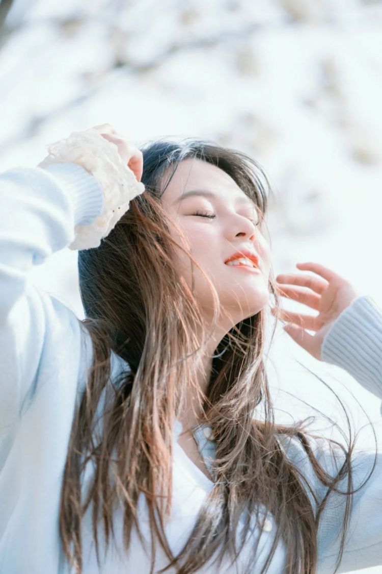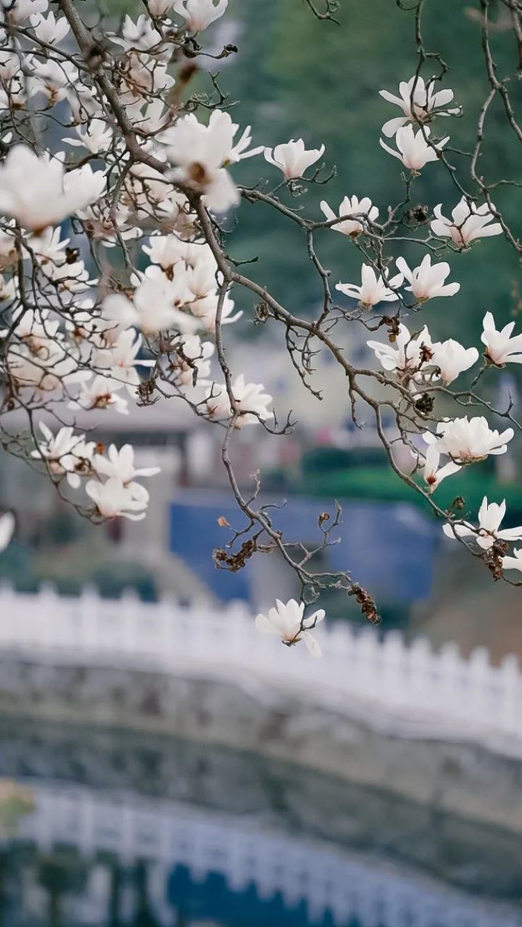 在拍摄玉兰花时,我们主要是利用垂下来的枝条作为互动和前景。如果有条件的话可以站到高处透过花树从上往下拍,甚至可以带上梯子或者凳子,站到花的中间去。除了拍摄人物特写之外,可以和树一起拍一些大场景。一般会有稍稍仰拍的方式让人和花更融合哦。