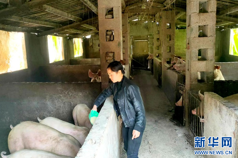 图为陈敏在猪舍喂猪。(张小溪供图)