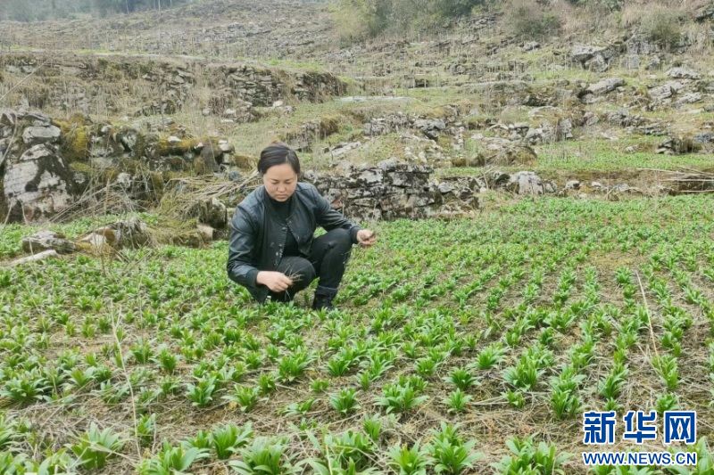 图为陈敏在田里查看贝母长势情况。(张小溪供图)