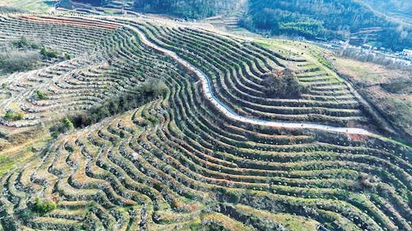 3月14日,记者在房县军店镇中村白鹤湾小流域山丘岗上看到,樱桃花、桃花、油菜花竞相绽放。近年来,该县实施小流域水土保持“山水林田路”综合治理,在治理后的荒山荒坡、山岗发展核桃、樱桃、茶叶、中药材等产业,通过立体式开发,将小流域65万亩荒山变成果茶药飘香的“金山”。特约记者张启龙通讯员孙淑芬摄