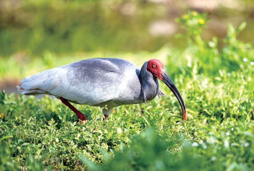 整翮辞炎服,乘春向帝畿。沉浮茄下食,容与藻中依。——清·纳兰性德《朱鹭》
