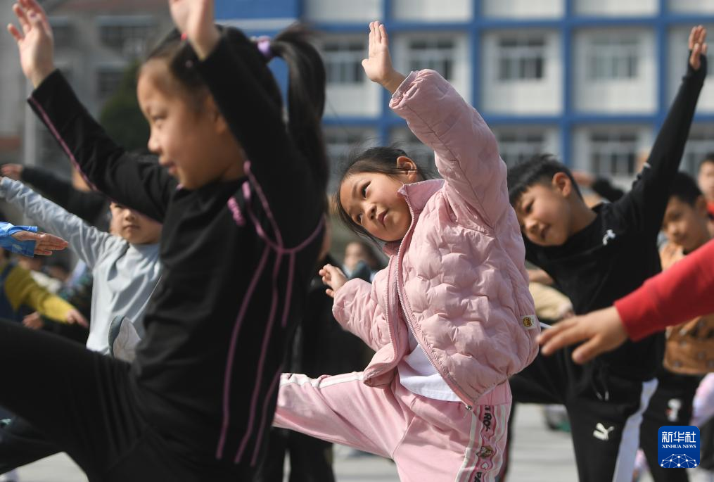 3月21日,在湖北省网球学校,学生们在课间做广播体操。新华社记者 杜子璇 摄