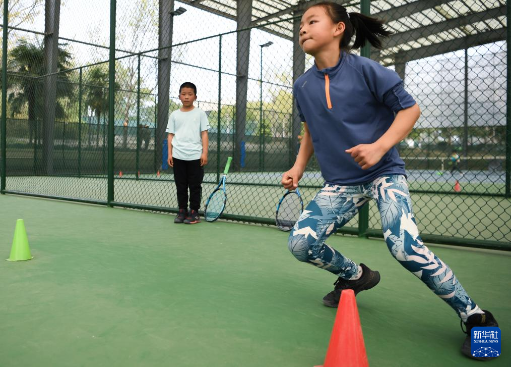 3月21日,在湖北省京山市文峰公园网球场,湖北省网球学校学生魏莎洁在训练中。新华社记者 杜子璇 摄