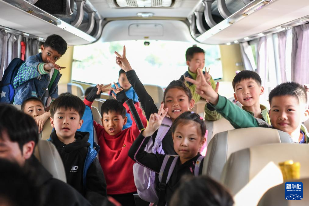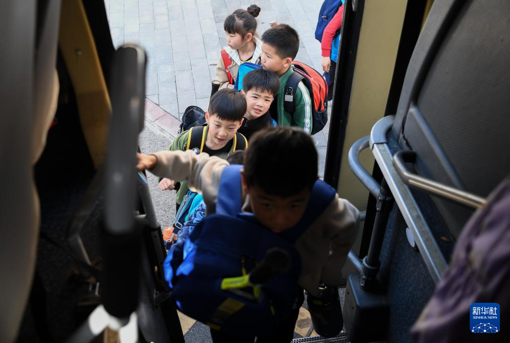 3月21日,学生们乘车去文峰公园训练。新华社记者 杜子璇 摄