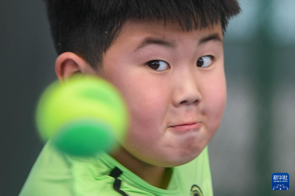 3月21日,在湖北省京山市文峰公园网球场,湖北省网球学校学生宋孝阳在训练中。新华社记者 杜子璇 摄
