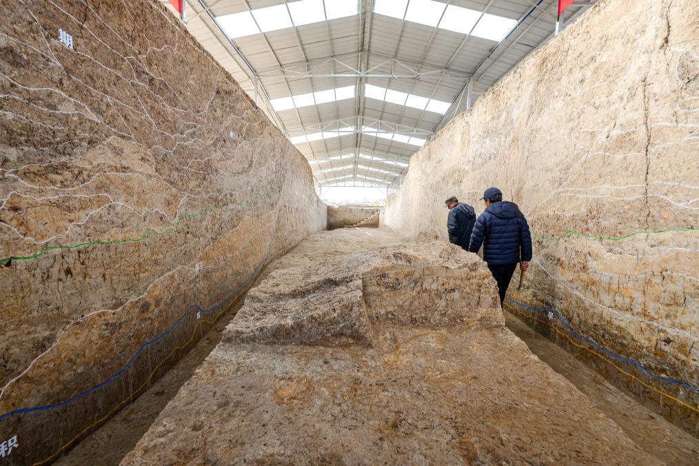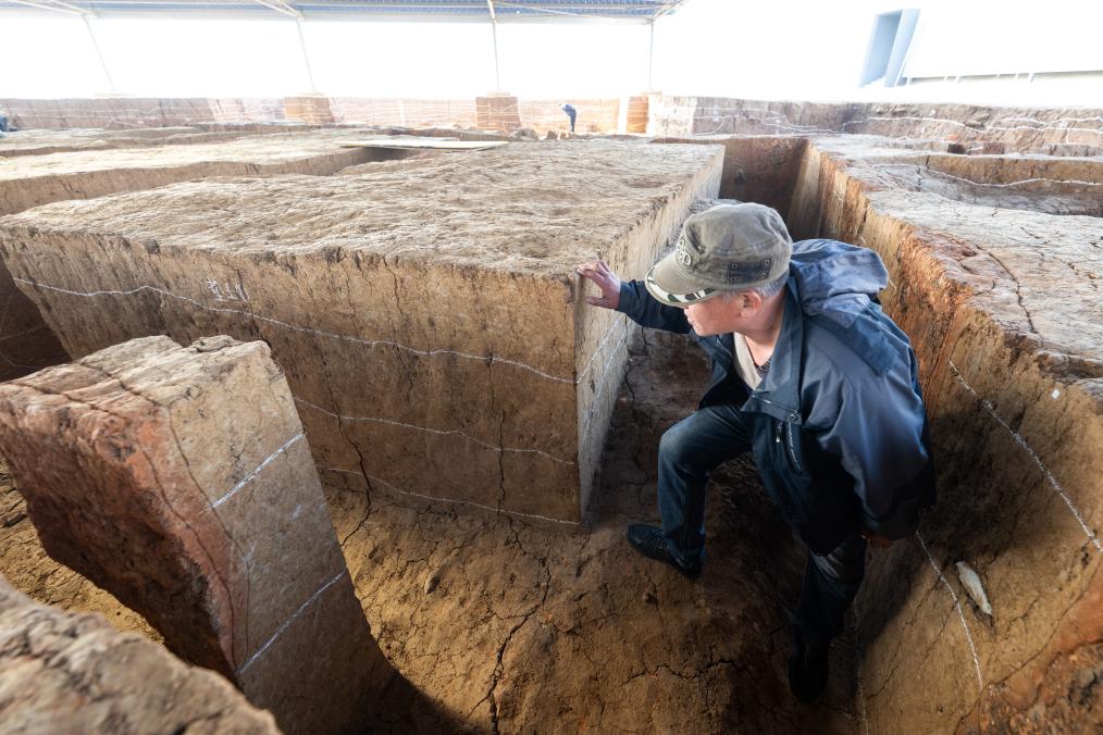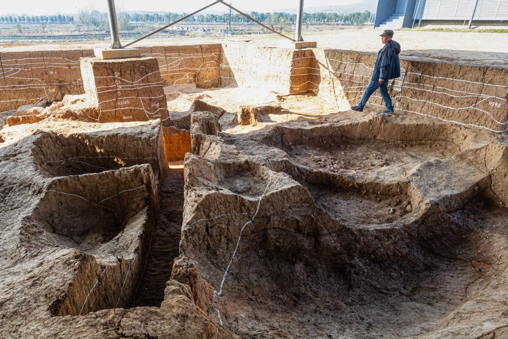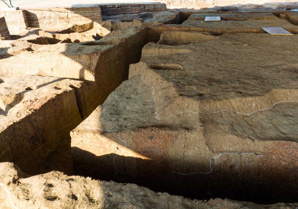2023年12月4日拍摄的湖北荆门屈家岭遗址F38发现的磉墩。