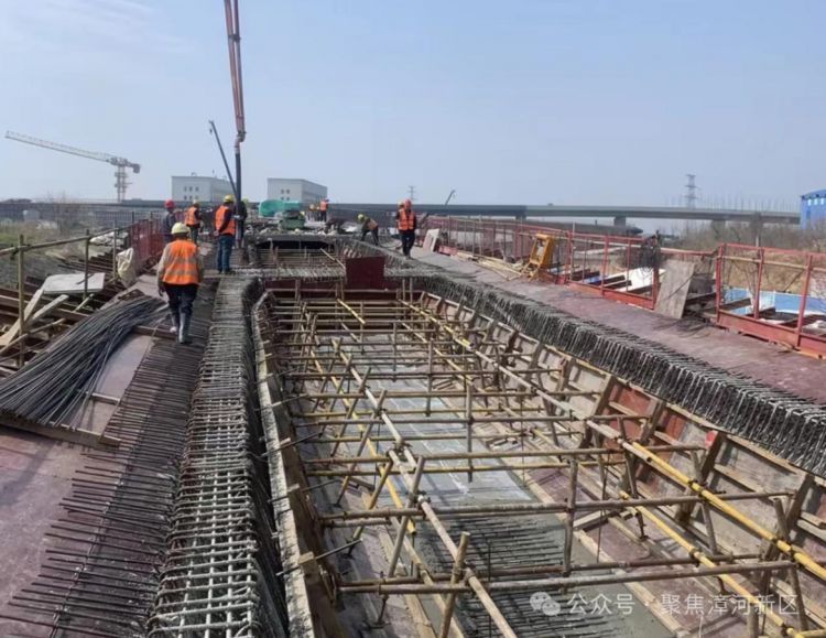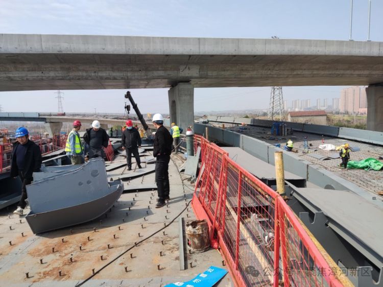 杨柳路至深圳大道标段道路南起深圳大道,主线上跨焦柳铁路与杨柳路,北端可直达罗汉山隧道。该项目主线设计全长1305米,道路红线宽度50米至54.5米。该段为关键性节点工程,为确保整个项目有序推进,漳河新区城乡建设服务中心组建专班队伍开展项目建设攻坚行动,全程紧盯工程建设、督导施工质量,协调解决建设中各类堵点难点问题,全力助推项目建设“大提速”。