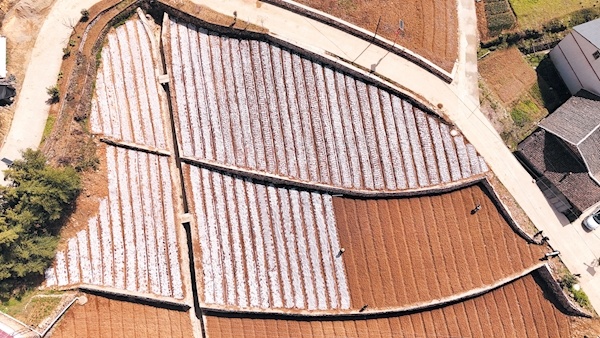 3月19日,郧阳区南化塘镇玉皇山村农民在播种甘露子。甘露子又名地藕、宝塔菜等,以全草或块茎入药。今年,玉皇山村农业合作社新种植甘露子60余亩。近年来,南化塘镇大力发展以甘露子为代表的中药材产业,引领群众增收致富。特约记者 王涛 摄