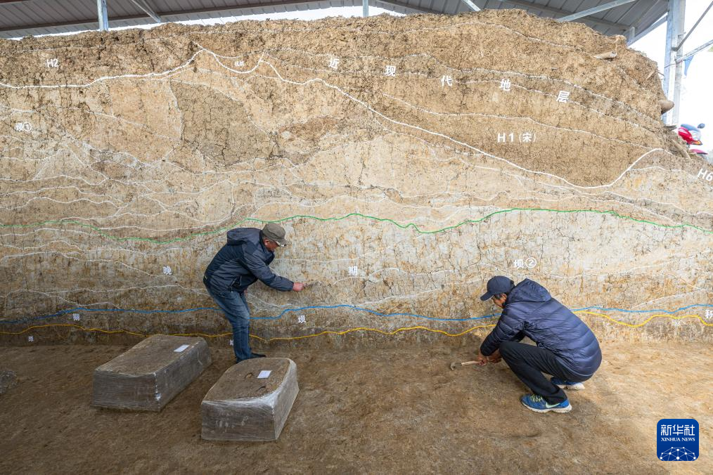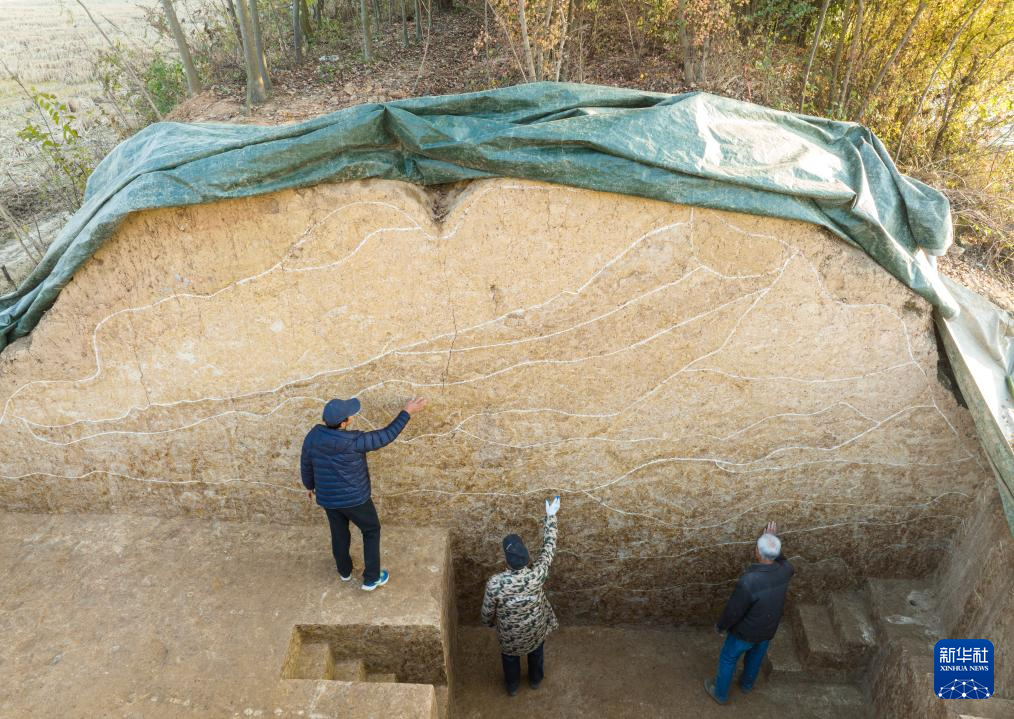 2023年12月4日,考古人员在湖北荆门屈家岭遗址熊家岭水坝现场进行考古工作 。