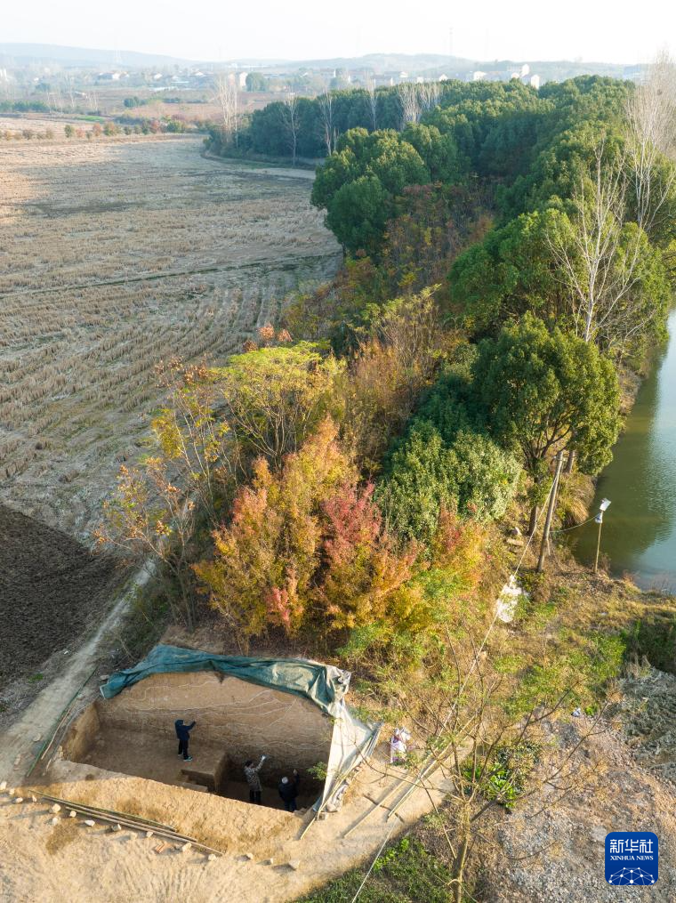 2023年12月4日拍摄的湖北荆门屈家岭遗址一角(无人机照片)。