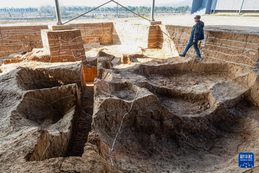 2023年12月4日拍摄的湖北荆门屈家岭遗址F38发现的磉墩。