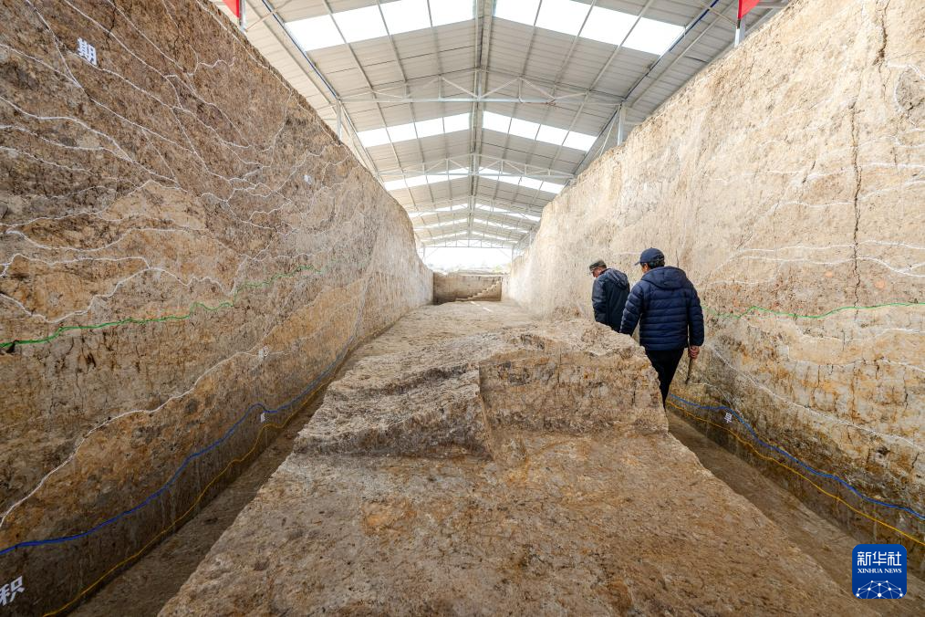 2023年12月4日,考古人员在湖北荆门屈家岭遗址F38现场进行考古工作。