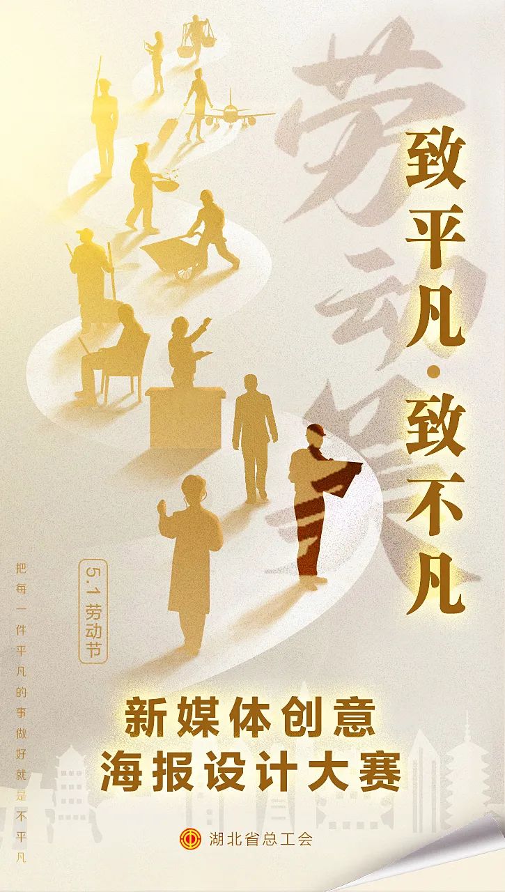 为深入学习贯彻习近平总书记关于工人阶级和工会工作的重要论述,大力弘扬劳模精神、劳动精神、工匠精神,在全社会营造崇尚劳动、尊重劳动、热爱劳动的浓厚氛围,在“五一”国际劳动节来临之际,省总工会开展“劳动美——致平凡·致不凡”新媒体创意海报设计大赛。