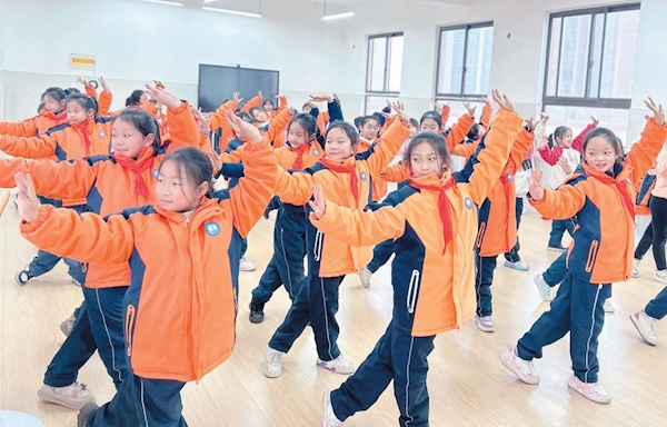 为持续促进学生全面发展,扎实落实“双减”政策,郧阳区献珍学校根据各年级学生不同特点,开设了足球、武术、舞蹈、美术、手工制作、科技创作等20个社团课程,引导学生自主选择、全员参与。图为3月25日学校舞蹈社团学生在训练。通讯员李习勇摄