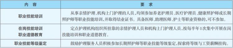 此外,《通知》还进一步规范居家护理服务行为,加强监督管理,对护理服务人员的职业技能培训、职业道德教育、扣分处罚等作了相关要求和规定。