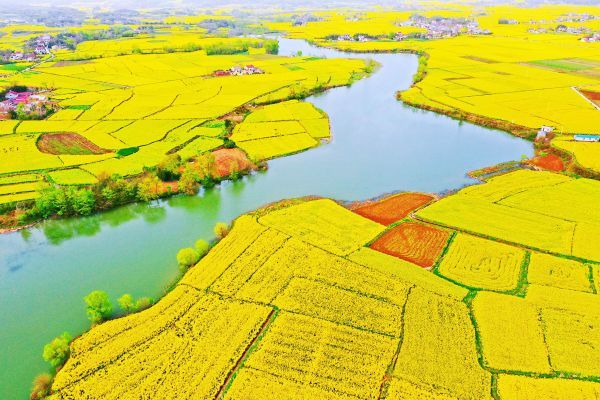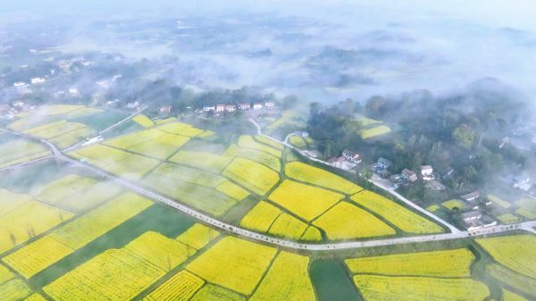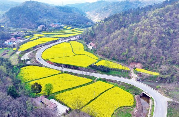 3月26日,雨后的荆门城北山区满目金黄,成片的油菜花争奇斗艳。子陵铺镇万家坪村,石桥驿镇新集村,栗溪镇毛坪村,仙居乡白洋村、三泉村等油菜花集中的村落,随处可见前来打卡的游客。近年来,东宝区充分利用土地资源,将油菜、水稻、小麦、玉米等农作物轮换耕种与乡村振兴有机结合起来,每到油菜花盛开的季节,金色的油菜花海令人陶醉,吸引来游客,促进了农旅融合和乡村振兴。(记者 朱俊波 通讯员 刘嫣 李梦婕 摄)