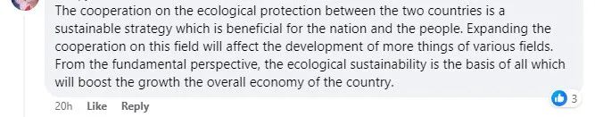 (两国生态保护合作是利国利民的可持续发展战略。扩大这一领域的合作将影响到各个领域更多事物的发展。从根本的角度来看,生态可持续性是促进国家整体经济增长的基础。)