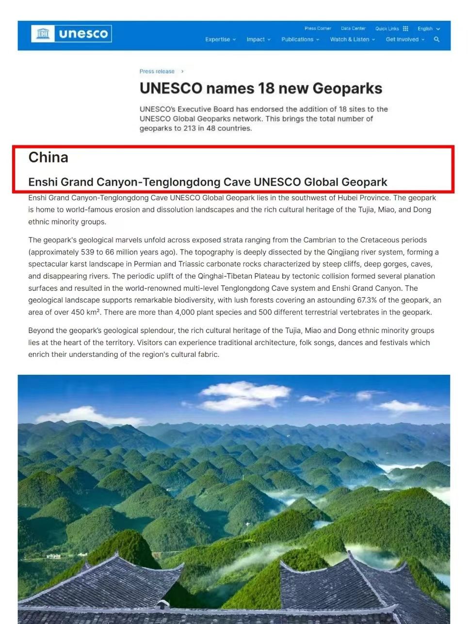当地时间3月27日,在法国巴黎召开的联合国教科文组织执行局第219次会议上,湖北恩施大峡谷-腾龙洞地质公园被正式批准为世界地质公园。
