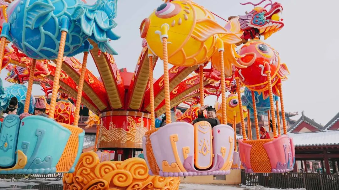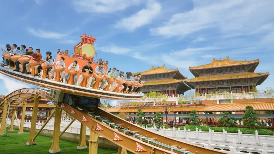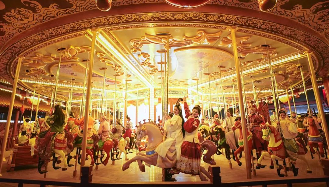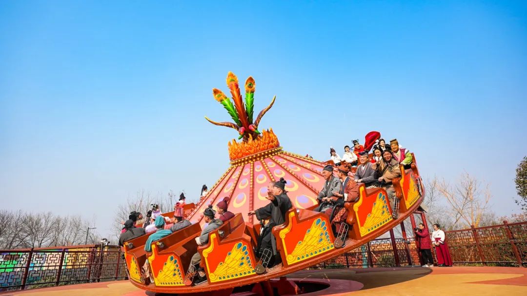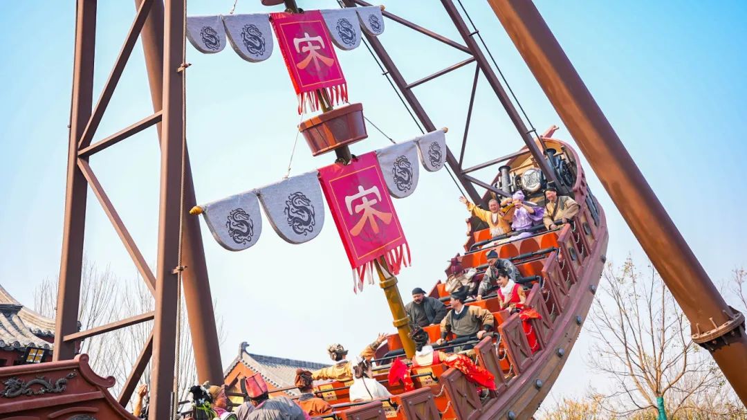 穿宋装乘坐大宋·皇家乐园的游乐项目,