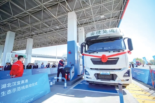 3月30日,东风商用车有限公司联合湖北省交通投资集团有限公司共同打造的汉宜氢能示范线正式投运,现场交付首批30辆氢能重卡东风天龙 KL氢燃料牵引车。随着汉宜氢能示范线的投运,将有力推动我国氢能产业链上下游的协同发展,构建起从制氢、储运氢到用氢的完整闭环生态系统。图/记者 罗毅