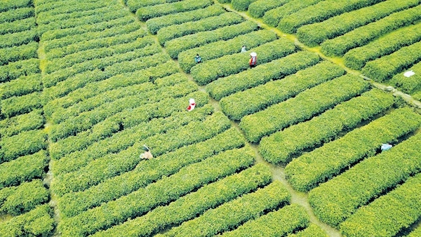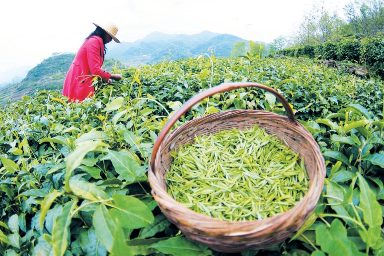 4月6日,在郧阳区谭家湾镇五道岭村,茶农抢抓农时采摘茶叶。近年来,该区采取种植规模化、管理规范化、产销一体化的“公司+基地+农户”运营模式,大力发展茶产业,带动茶农增收,助力乡村振兴。该区茶叶种植面积达7万亩,其中可采面积达6.5万亩。特约记者曹忠宏摄