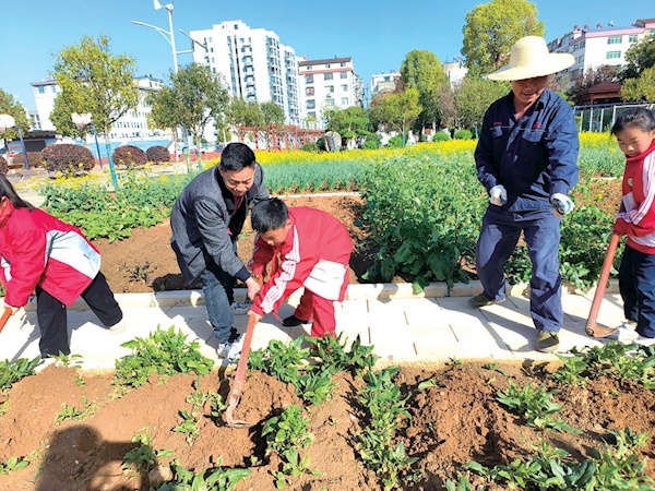 为使学生充分感知清明节气,围绕节气时令特征,房县东城小学开展“清明前后种瓜点豆”的主题劳动实践教育活动。老师向学生讲述节气、农事、农谚等知识,并带领学生们挖地、松土,将一颗颗南瓜籽、一棵棵嫩苗播种在肥沃的泥土地里,大家忙得不亦乐乎。