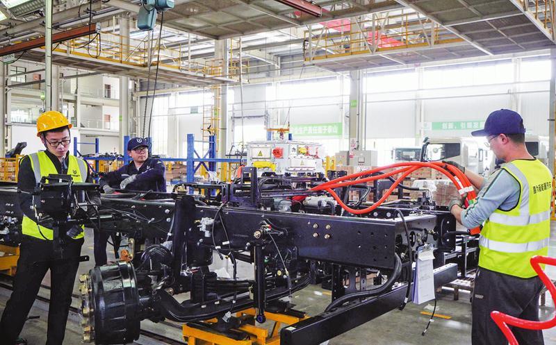 新能源车是近年来出口的一大亮点。在程力集团新能源车厂看到,工人们正在装配一批18吨新能源专用车底盘。今年,该公司已经接到新能源车订单300余台。刘峰表示,新能源车的市场空间很大,目前还有一批新能源车订单在谈,将来会成为外贸出口的一支重要力量。