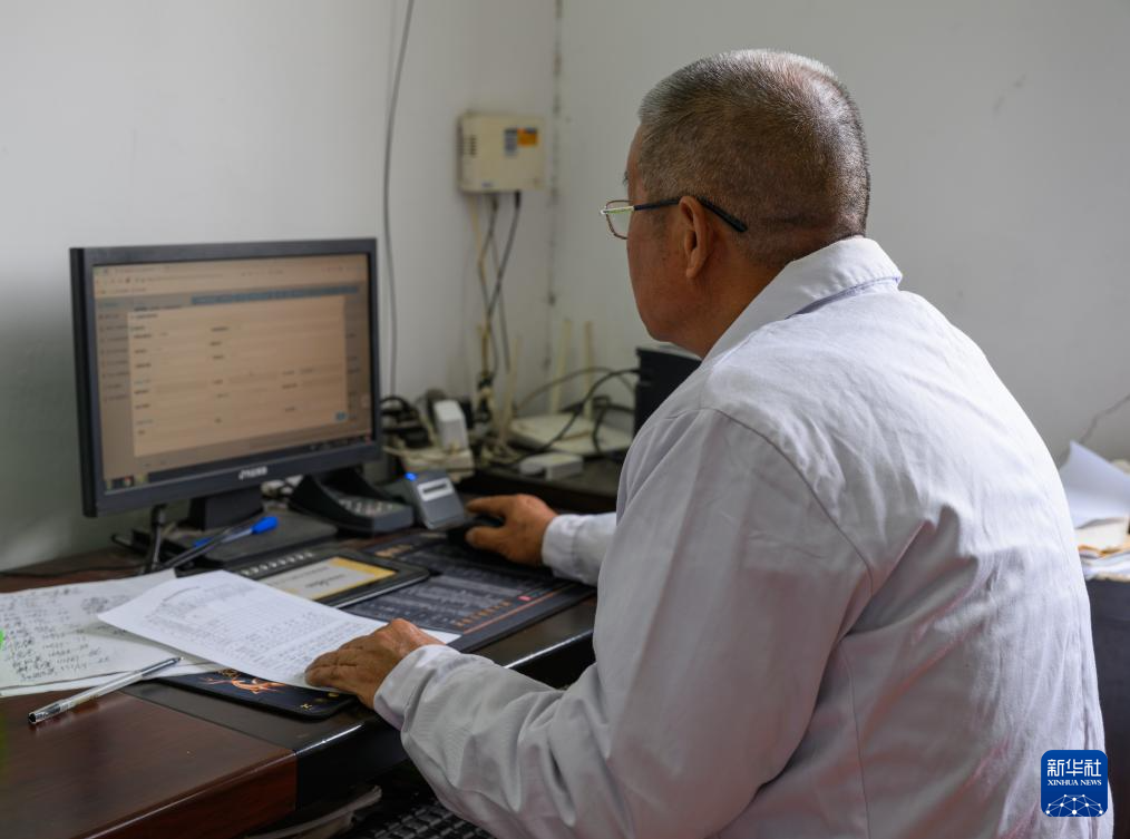 4月8日,在湖北省黄冈市红安县华家河镇大学村,刘昌菊在卫生所工作。新华社记者 胡竞文 摄