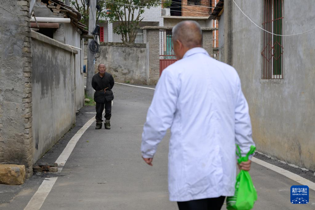 4月8日,在湖北省黄冈市红安县华家河镇大学村,刘昌菊在去村民家问诊的路上。新华社记者 胡竞文 摄