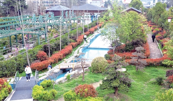 近日,记者在茅箭区车站沟水环境治理生态公园看到,园内水体清澈、景色宜人,居民在这里休闲散步。
