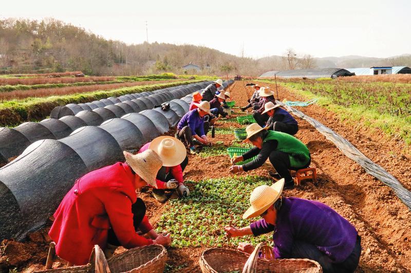 连日来,曾都区洛阳镇邱畈村金丝皇菊基地一派忙碌景象,菊农们正在忙着进行育苗、栽苗、除草。 (随州日报全媒记者李文军、通讯员胡晓奎摄)