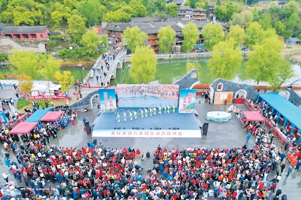 房县军店镇“美好环境与幸福生活共同缔造”暨“三月三”民间民俗文化展演活动现场