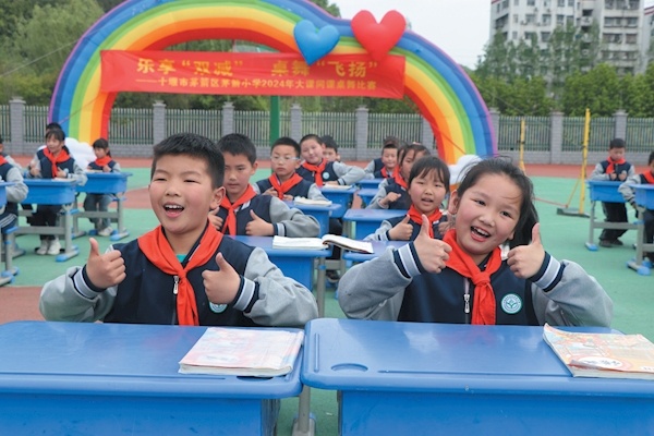 4月9日,茅箭区茅箭小学开展了精彩的“乐享‘双减’桌舞飞扬”大课间课桌舞比赛。18个参赛班级的自编课桌舞主题不同、内容各异、积极阳光、充满活力。伴着《追光的少年》、《天天向上》、《上春山》等曲目,孩子们脸上洋溢着自信与欢乐,在课桌前或是手臂舞动,或是敲击桌面,全面展示了该校学子活泼、健康、蓬勃的精神风貌。通讯员靳书敏魏星宇摄