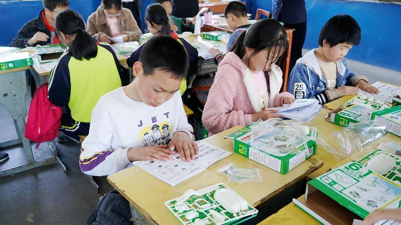 新华书店的工作人员还为学生们上了一堂别开生面的科技手工课,手把手教学生们制作太阳能小玩具,培养他们的思维创作能力和动手能力。“这节课太有意思了,在老师的指导下,我的风车转起来啦!”六年级的王蓉琦兴奋地说道。