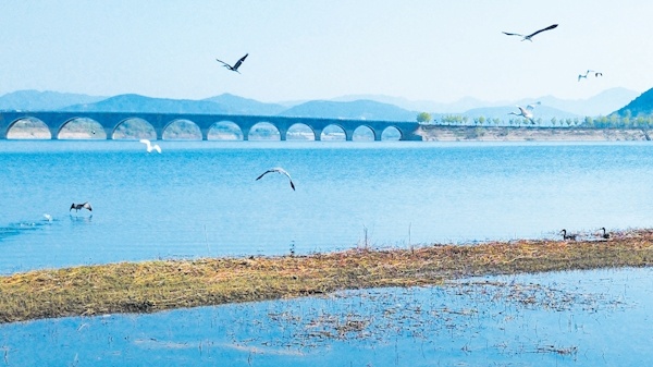 4月11日,汉江郧阳区段,江面清澈如镜,飞鸟来回盘旋,景色美不胜收。近年来,郧阳区深入推进“河湖长制”,开展全域守水护水行动,保护流域生态环境,增强水域生态功能,确保一库碧水永续北送。特约记者杨显有摄
