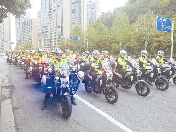 昨日,“堰警快骑”队正式成立,40名队员骑着警用摩托车依次上路,开启新的勤务模式。据悉,“堰警快骑”队是在市公安交管局原“快骑队”的基础上新成立的,首批队员共40名,均是从各大队精挑细选的辅警,实施网格化巡逻,定岗定责,强化监督管理,确保快速发现、快速处置交通事故、道路拥堵和其他突发交通警情。图/记者 张建波