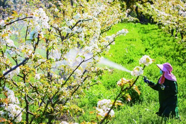 梨花千树雪,杨叶万条烟。日前,随着气温回升,在位于钟祥市冷水镇的湖北铜钱山生态农业发展有限公司水果种植基地,近千亩梨花竞相开放,如银似雪,令人陶醉。(胡敬彬 摄)